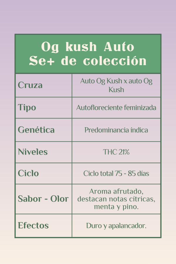 Versión automática de una variedad tan clásica como efectiva. Con una vida total de alrededor de 75 días, se destaca por sus cogollos duros y compactos, un crecimiento vigoroso y un aroma afrutado donde notas cítricas, la menta y el pino destacan considerablemente. Un efecto duro y apalancador como sus flores es el resultado después de consumirla.